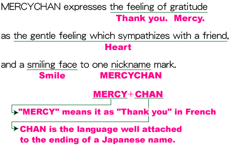 ※ Please read as mentioned above. Please do not read as follows. It is because MERCYCHAN is a coined word of “CHAN” of the nickname of a name of Japan as “French thank you”. ・・・(MERCY+CHAN)