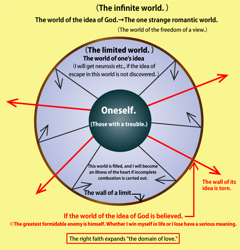 The link place in this HP of the relation of H+S=M 1 Reformo of human beings' soul.= No1 of the special all the love character theory. 2 Idea. (A new concept.) ※ H+S=M is one essential firm belief of man. This equation was borne by “Man is the living thing of thank you” and “Proof of human beings’ goodwill”. ※ The definition of the special all the love character.・・・ The 1 exceeds all the differences of human beings. And the 2 warms a soul brightly with a powerful special light called love like the sun to all the people. And finally the 3 creates the soul with which all the people were filled with affection. I defined the character which completes even these 1-3 as "the special all the love character." The fusion reaction of the sun and a soul. No15. 【If life faces despair, it has a way of faith.】・・・・ The more science progresses, the more the present age stops believing in God. It is because faith is not scientific. That a present-day trend is not scientifically proved to be cannot be trusted. Many people have said, "The head becomes painful", if the religious philosophical talk is heard. It is because the head becomes painful that people cannot understand. Thus, the world of God is generally disliked. Philosophy is poor at man. People who are generally criticizing religion have not experienced despair in life. It is better not to experience despair in fact. This chapter explains why faith opens a new chapter in the future. It is clear that the world's of God is not scientific. There is no person who proved existence of God scientifically. And there is also no person who witnessed God. But in man's world, much religion exists. This is wonderful. Why is it? Next, man is positioned as "a spiritual living thing." Man may be governed in the face of the wall of despair by the feeling of "pain." When it becomes such a situation, man is going to break through the wall in an idea on hand. Man may be able to overcome in the idea. However, man may be unable to overcome. Man is puzzled when it becomes such a situation. When the worst, I may suffer from the illness of the heart. And I may commit suicide. An important thing is "itself's idea" here. "Its idea" has a limit. I stick and commit suicide to the limit. However, man can pour in "the idea of God" into the head. It is faith. If it does so, the idea of problem solving will spread. Man will be saved if the wall of a limit is torn by faith. However, the present age's tendency to dislike God is strong. There are many people who feel resistance for believing in God by that. Therefore, it is the environment in which it is hard to believe. However, when you despair truly, please do not rule over by those environment. Let's turn a rudder to faith decisively. Then, a life is connected. The most important thing in life is "connecting a life." It is throwing away the present idea, in order for you to become fortunate, and pouring in the idea of new God. The religion which many great predecessors cleared exists on human beings' history. The predecessors need to study "the idea of God" suffered for which troubles and cleared. Let's keep from being confused people who have not experienced despair in life. 【The one method of preventing suicide.】 The one method of preventing suicide. 【The picture which tears the wall of its idea.】 The most important thing in life is "connecting a life."