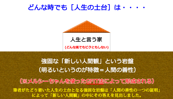 ※逆境を味方につけ、それを逆に肥やしにして成長しよう!! 逆境に直面した時こそ、成長のチャンスが来ているのです。生きる道は千手観音の「千手」のごとく千(=多く)の手(=方法、道)があることに気付きましょう。 上記の項目からたどり着く境地は「苦(く)の境地」です。その「苦(く)」の境地から「楽(らく)」の境地への転換、それがGFIT法です(ここのところの「AからBに変わること」)。「苦(く)」を粉砕する方法がGFIT法です。「苦(く)」は気にしてしまう(固執する)と頭の中からなかなか消えません。魂が晴れ晴れしない一つの理由はそのためなのです。これは精神衛生上よくありません。悪い方向に行く出発点です。 (まずは人生、気持ちから!!) 魂のイノベーションの核心部分 (脳内のミラー細胞にメルシーちゃんを焼き付ける)